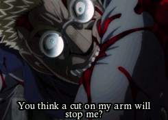 Graphics Playlist Covers Picspams This slideshow requires JavaScript. GIFs (TW: Some swearing and animated blood; it’s Hellsing, after all.) Share this: Share on X (Opens in new window) X Share on Facebook (Opens in new window) Facebook Like Loading...